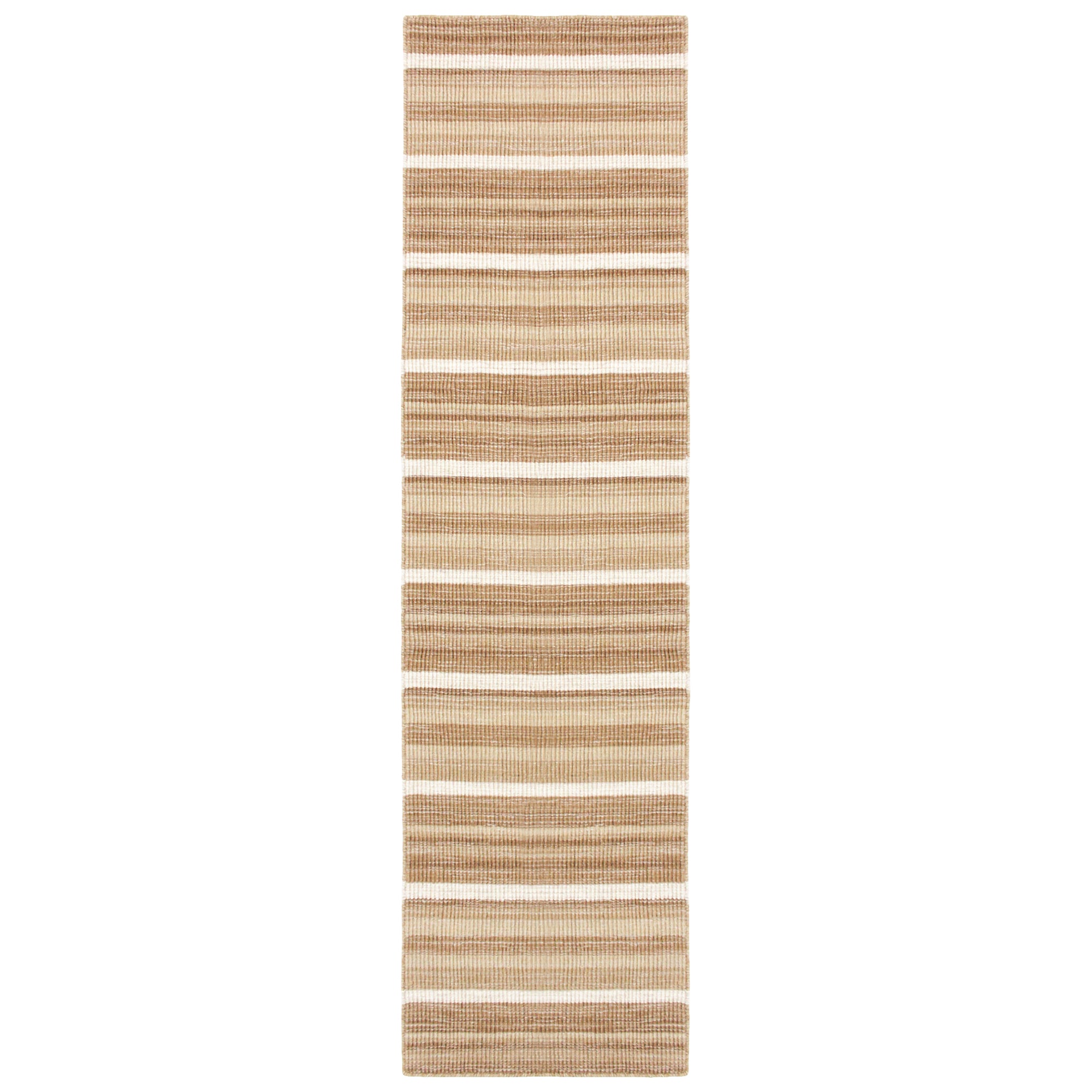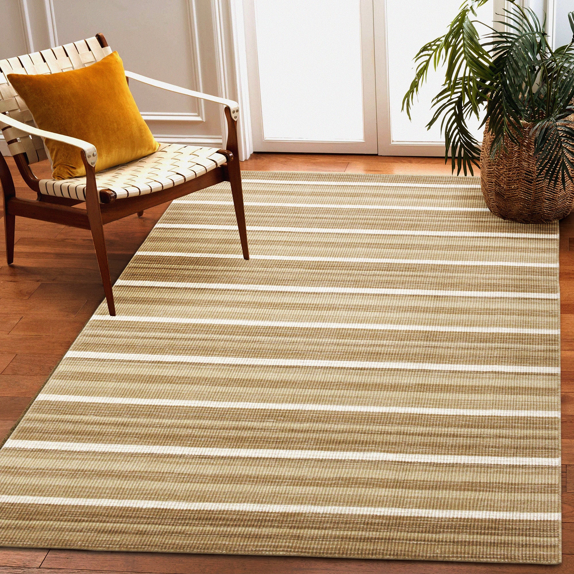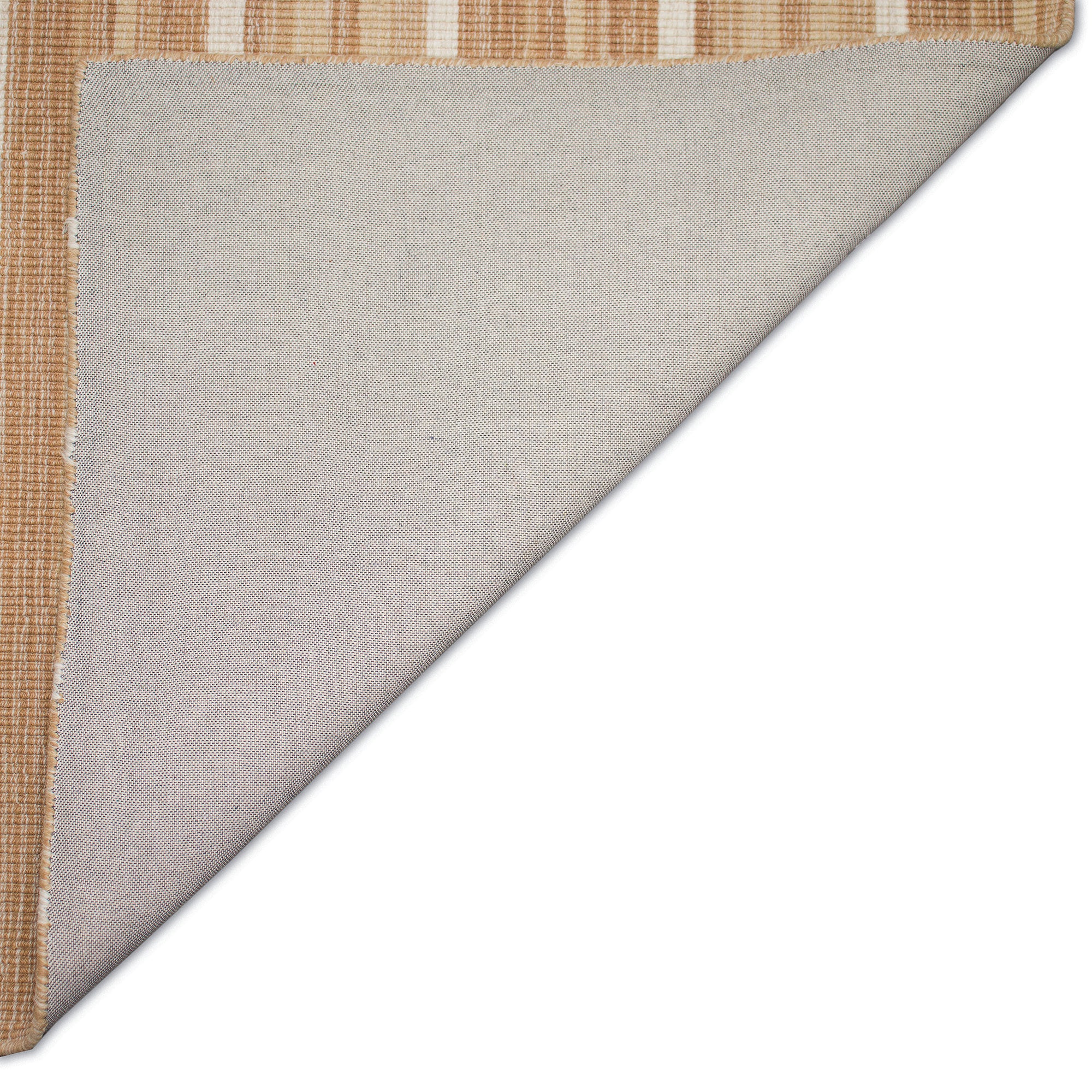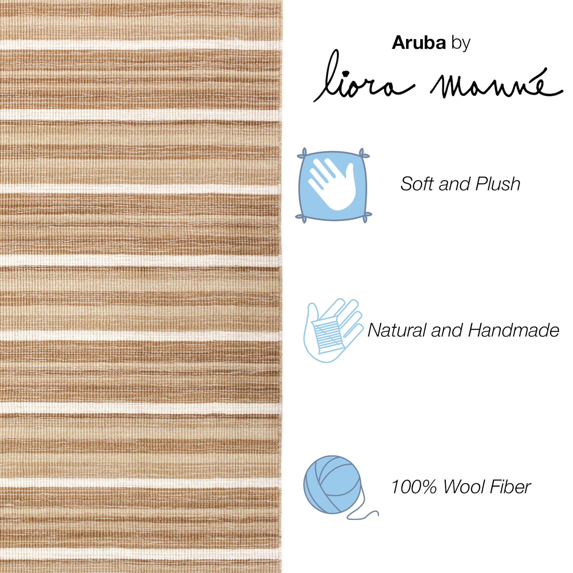 This area rug features an updated take on the traditional stripe with varying natural colors and line widths that create an understated but dynamic design. The saturated background hue in gradient shades are accented with white to highlight the subtle decoration. This combination of pattern and color deliver a casual and elevated style to your home. Crafted from 100% wool, the Aruba Collection is hand loomed to create intricate and shaded designs with crisp lines and a high-quality finish. The material is plush and soft underfoot, with a dense heavy loop that adds a luxurious touch to interior spaces such as your entryway, hallway, living room or bedroom. Detailed patterns are offered in updated traditional styles ranging from stripes to ombre; making these perfect accent pieces for your home. The use of a rug pad under the product is recommended.